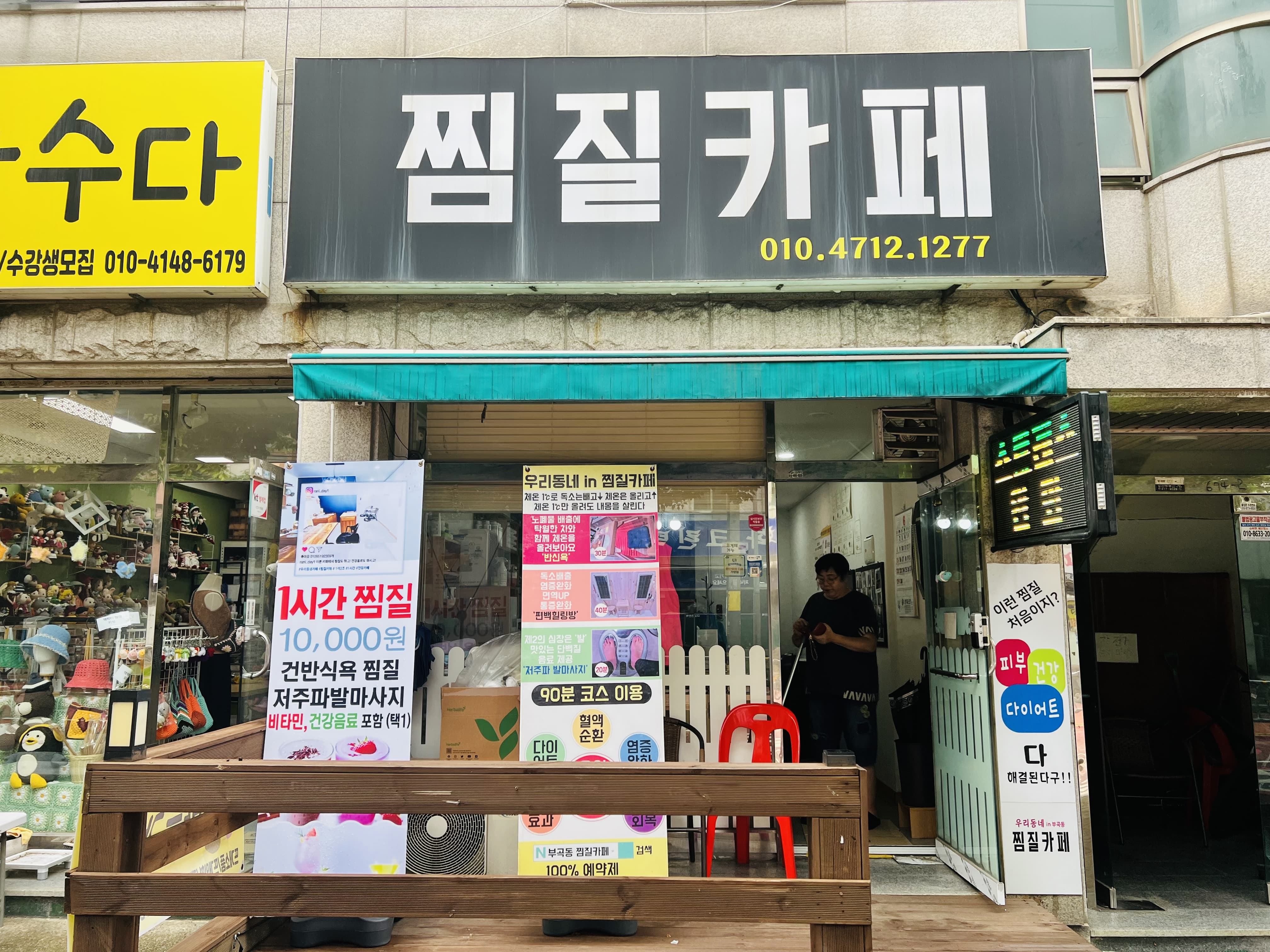 간판에는 큼직하게 "찜질카페"라고 쓰여 있어서 한눈에 잘 보여요.
