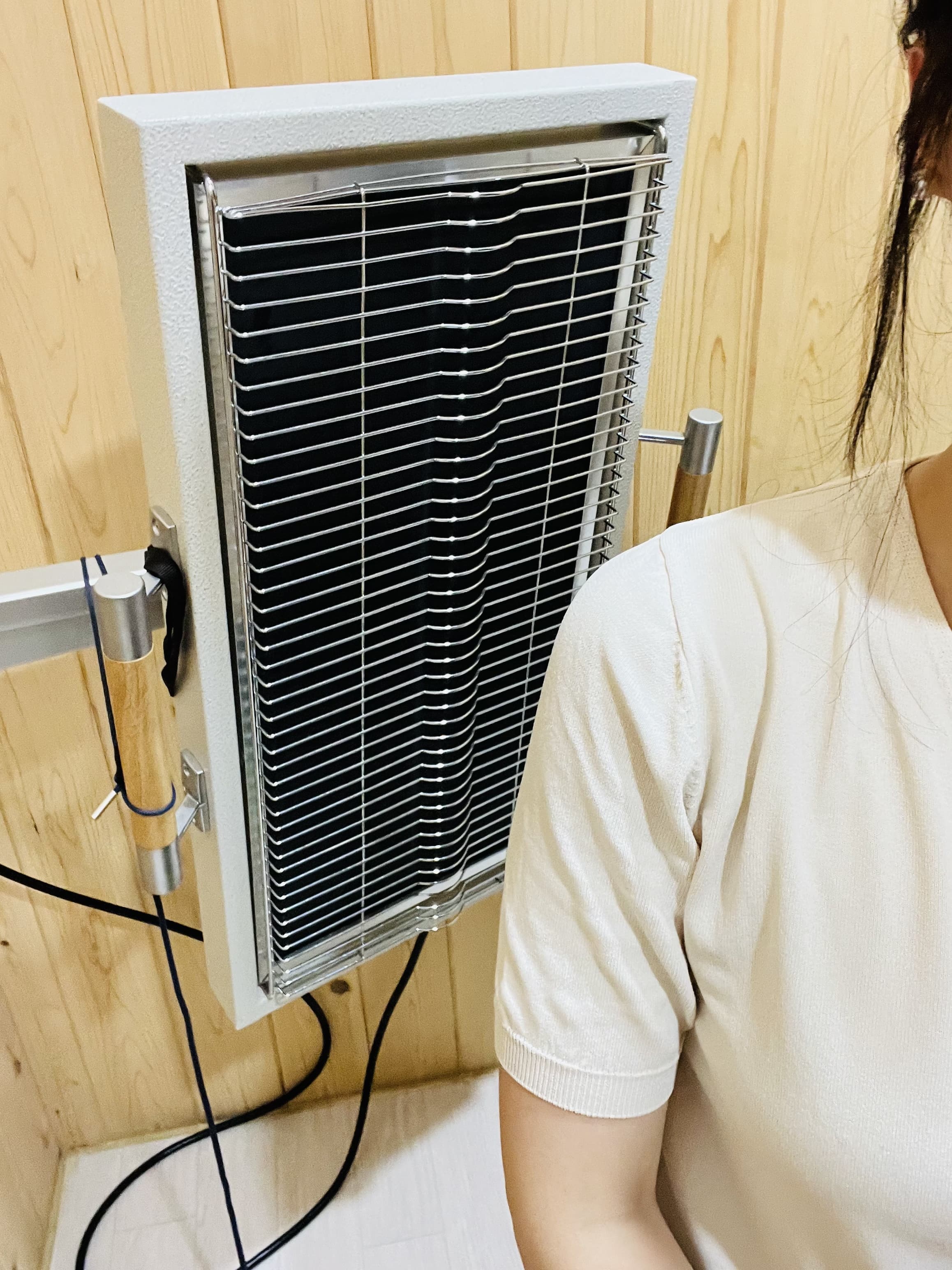 - 벽에 달린 패널형 기계 앞에 앉아서 온열 찜질