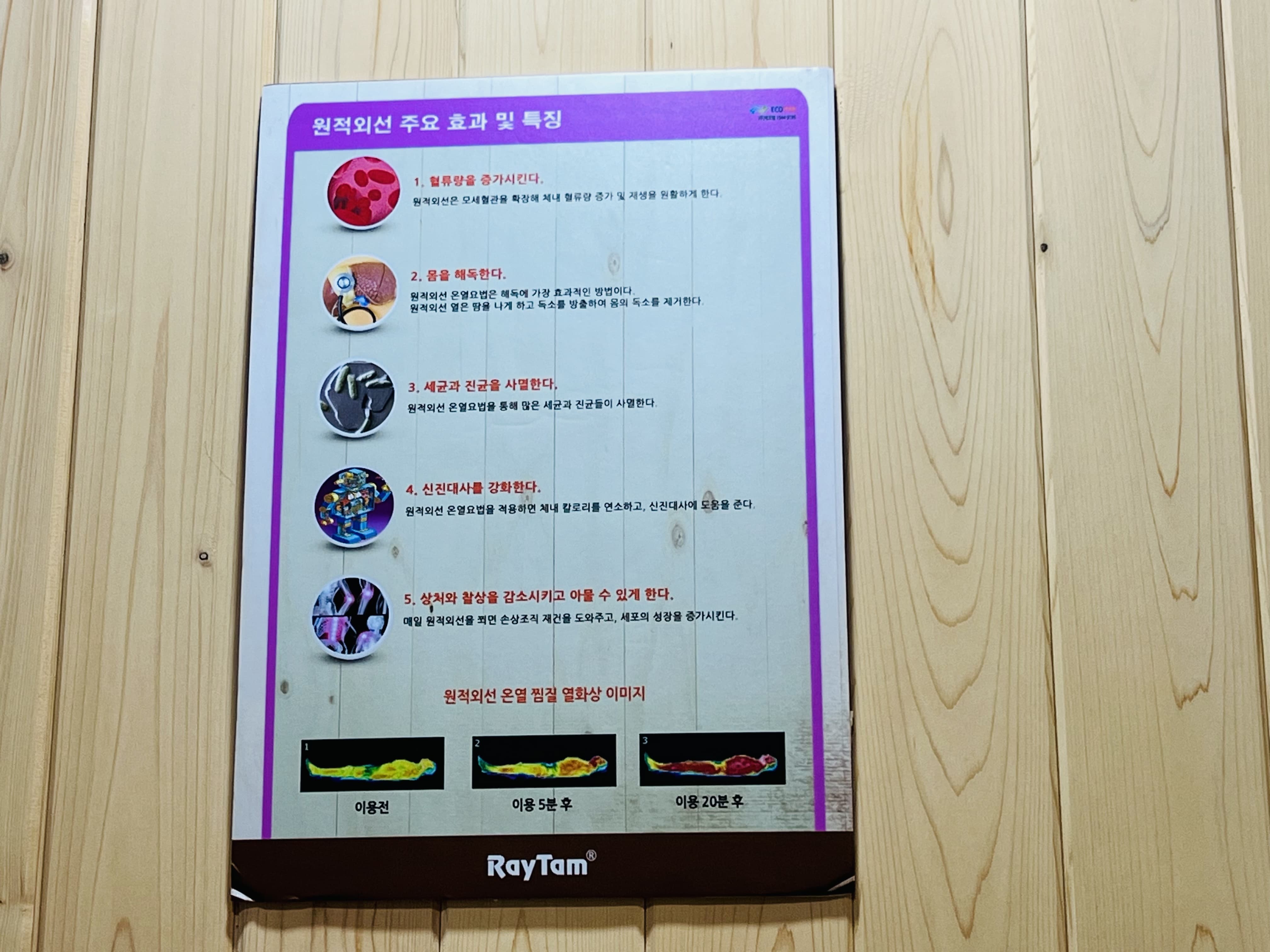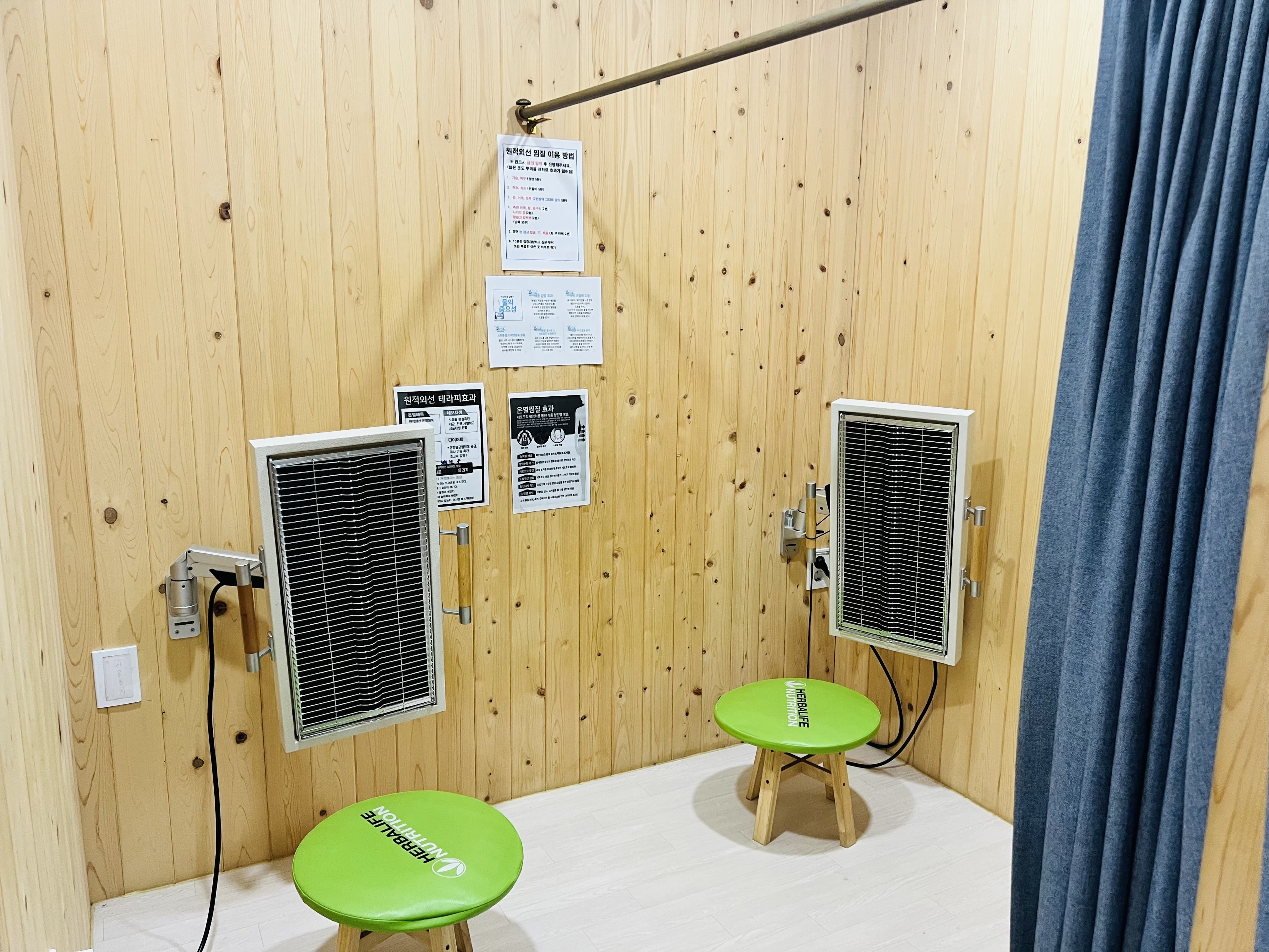 - 벽에 설치된 원적외선 찜질기에 앉아서 상의 탈의 후 찜질하는 공간