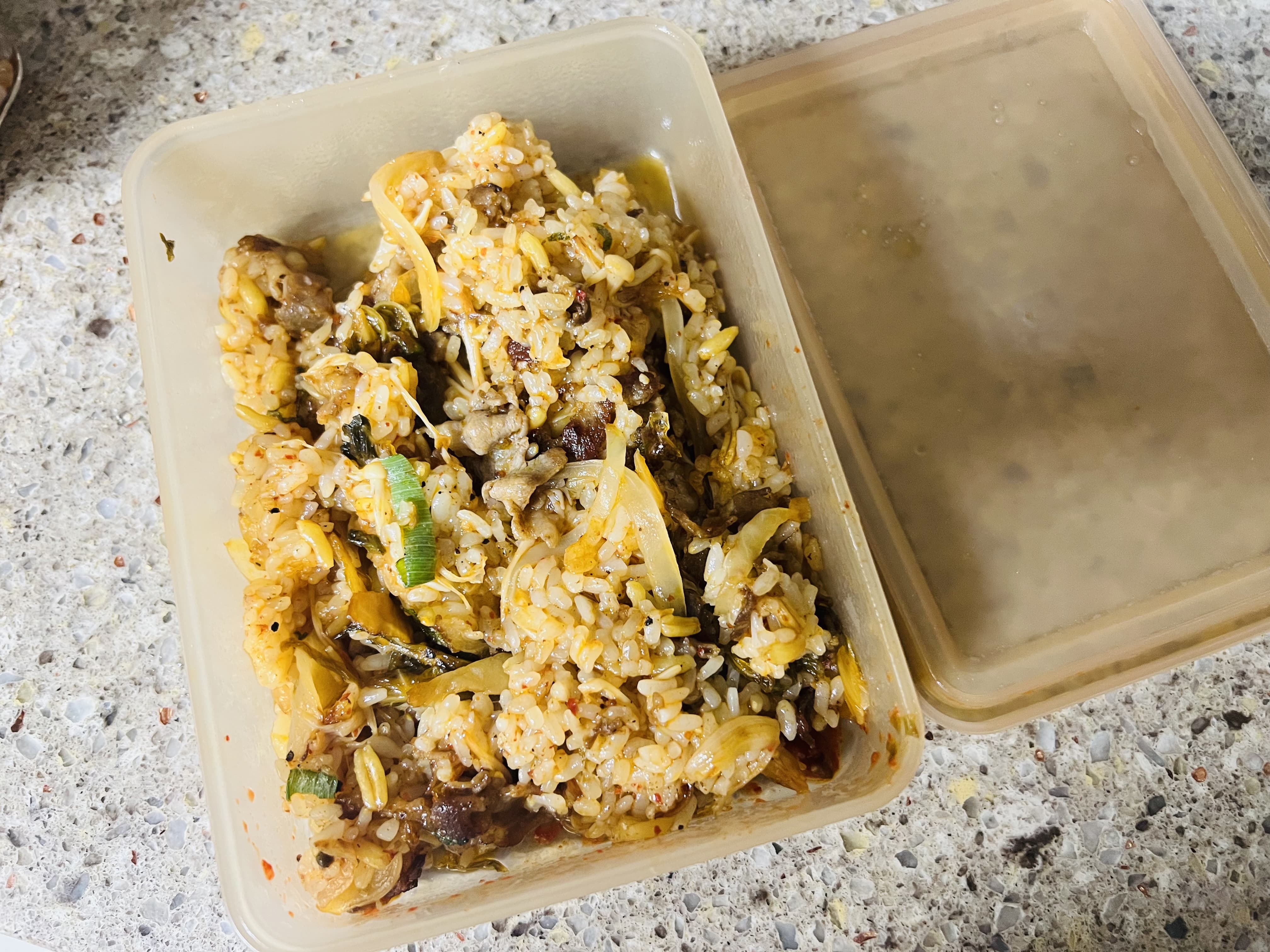 고기와 김치로 만든 볶음밥은 실패할 수 없는 맛. 먹고 나니 생각보다 깔끔했어요!