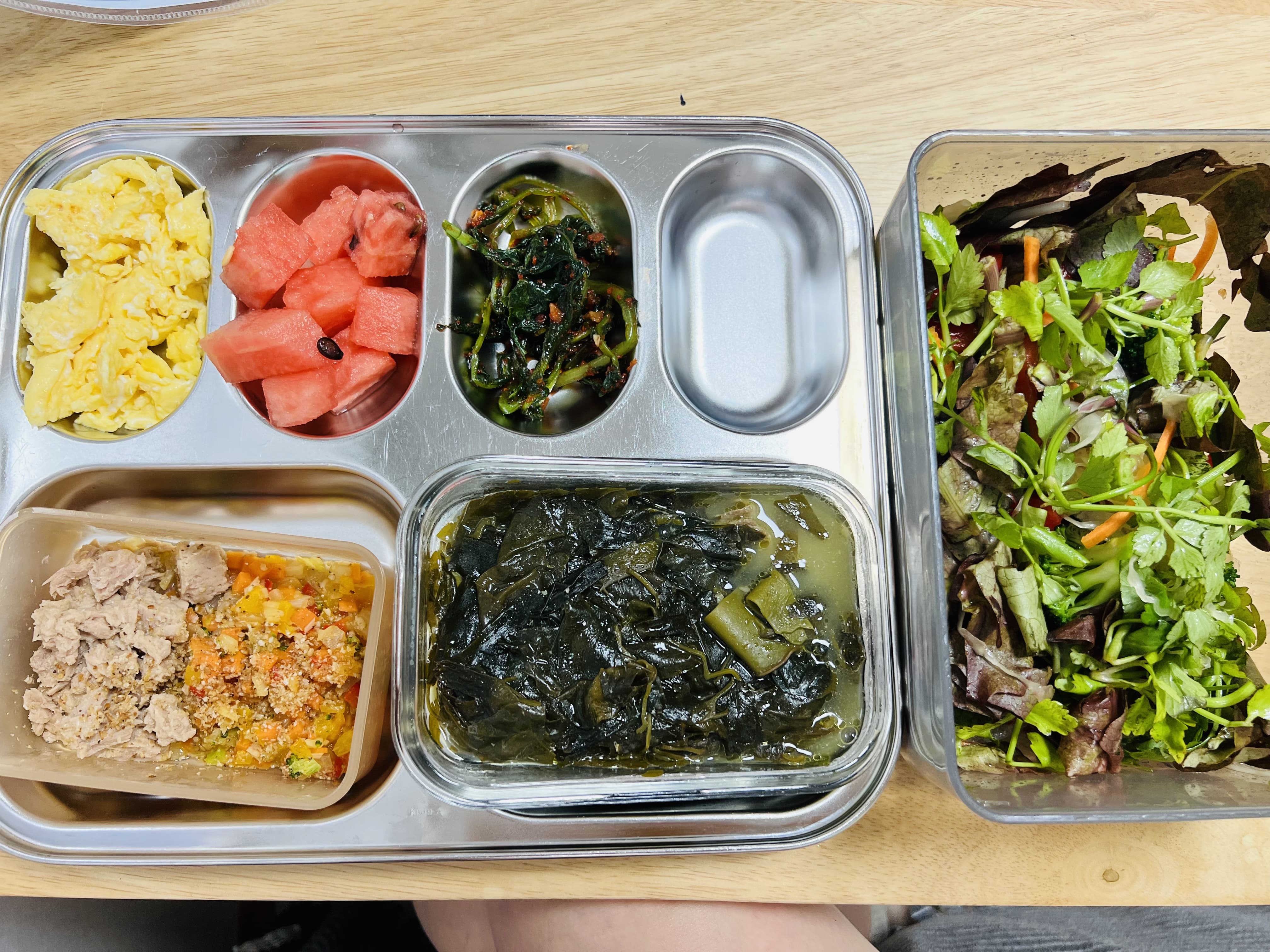 요즘 샐러드는 아빠가 주신 미나리 덕에 향긋함이 가득해졌어요. 단백질, 수분, 섬유질 밸런스 좋은 한 끼!