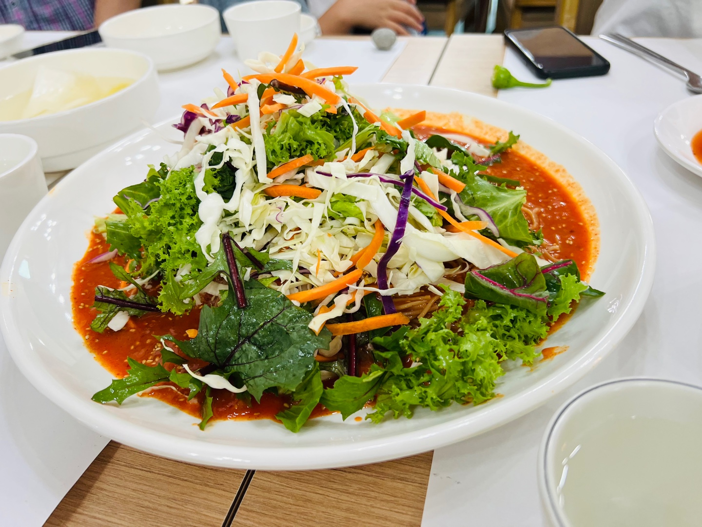 아삭한 양배추, 상추, 적채, 당근 등 각종 채소 듬뿍.