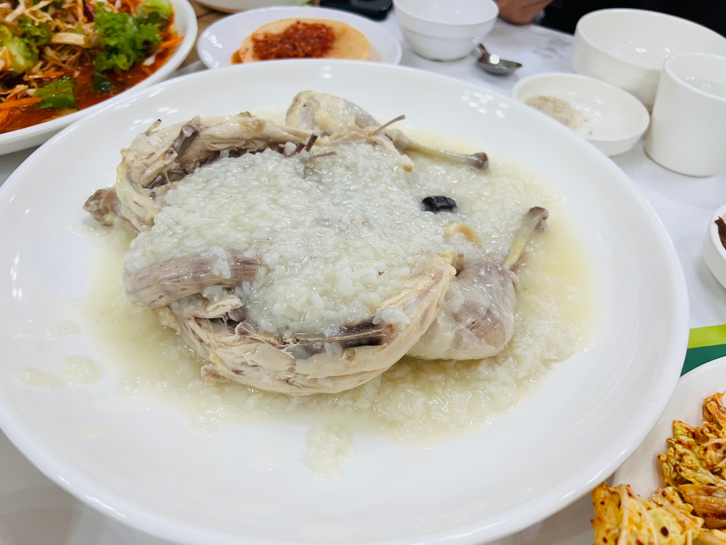 ✅ 통째로 나온 닭 위에 진득한 누룽지죽이 듬뿍!