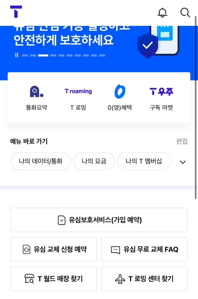 사실 T world 앱을 통해 간단히 유심 보호 서비스 신청이 가능합니다.