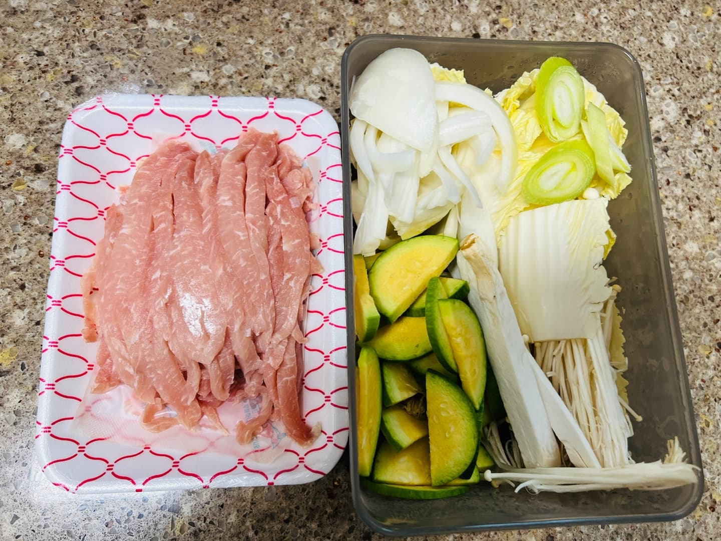 그래서 오늘 저녁엔 채소듬뿍 돼지고기채 볶음을 만들어봤어요.