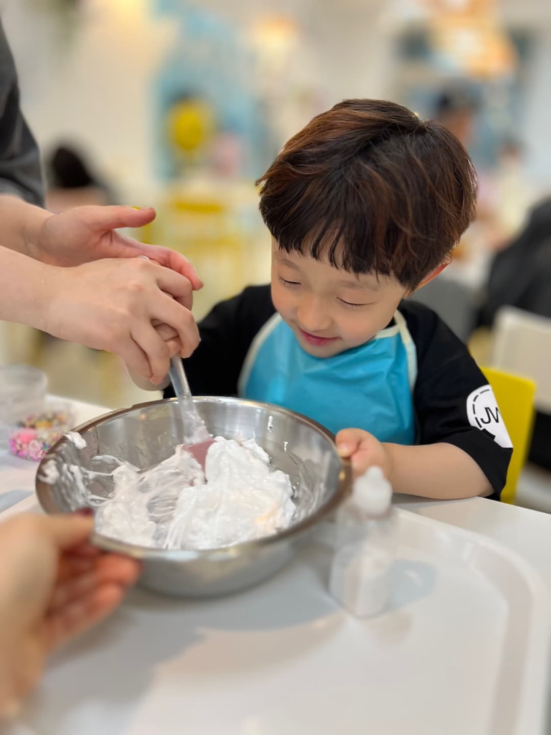 팔빠지는줄... 다음부턴 슬라임 카페에 갈때는 아빠가 꼭 필요할 것같습니다~! ㅜ