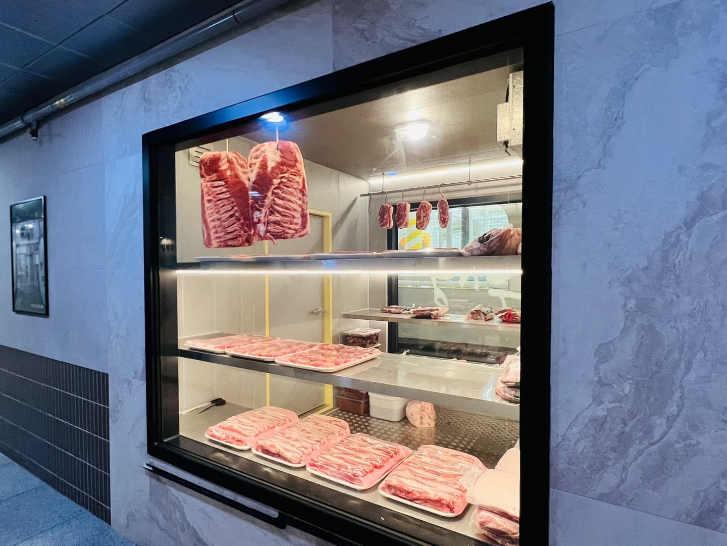 입구에 들어서자마자 보이는 고기 진열장.
