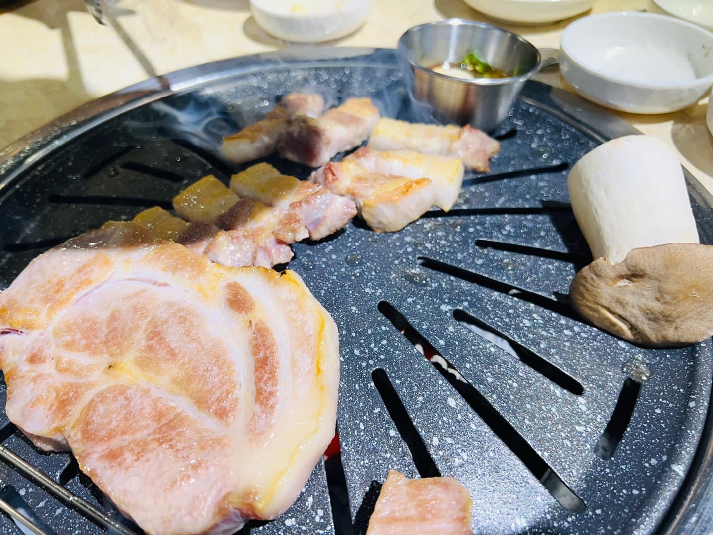 버섯까지 같이 구워서 식감의 밸런스를 더해주는 센스도 굿!