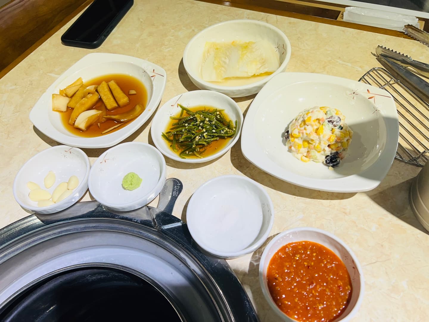 - 마늘, 와사비, 쌈장, 소금 기본 세팅