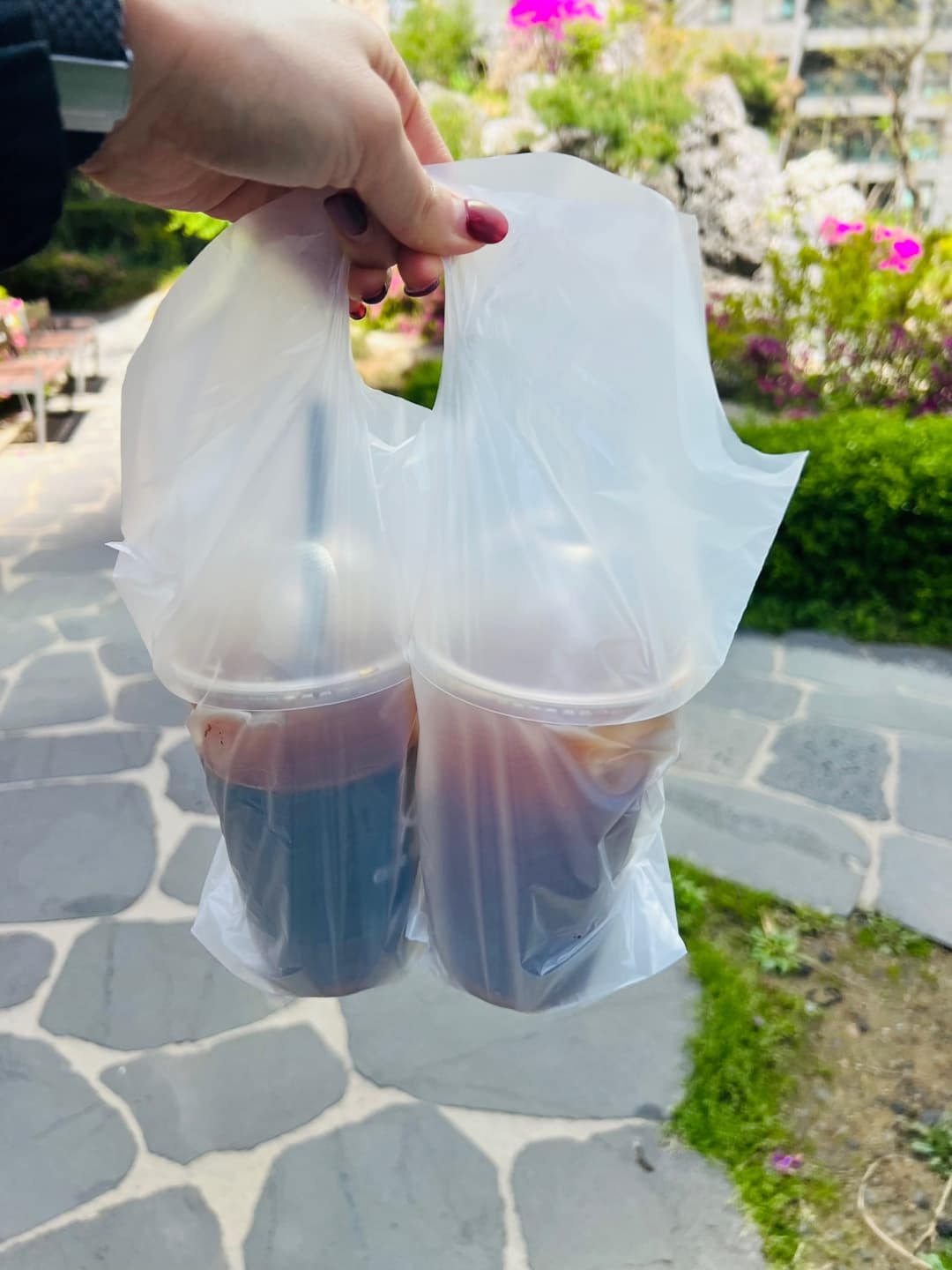 아침 운동 후, 날씨 좋은 바깥 공기를 마시며 마신 아이스 커피.