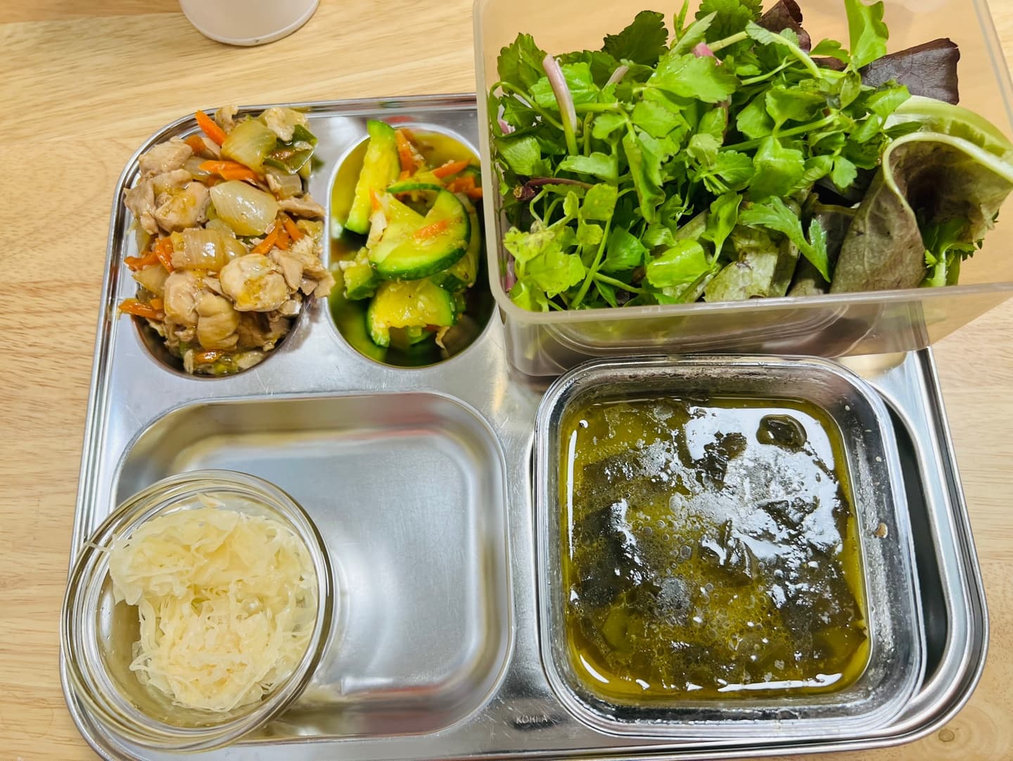 - 당근라페 + 사우어크라우트 + 돼지고기볶음 + 치즈
