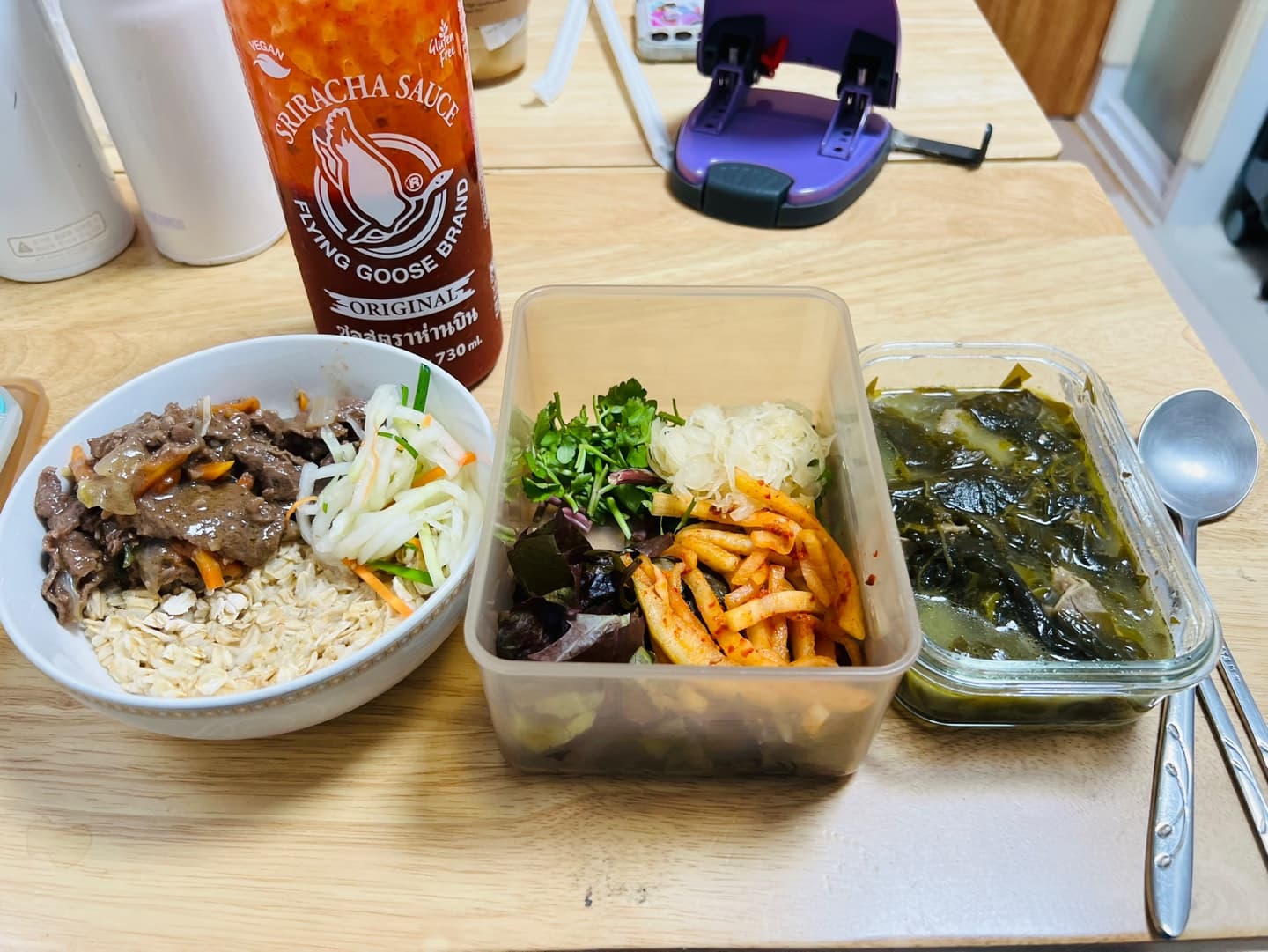 - 점심: 오트밀 불고기 비빔볼 + 미역국