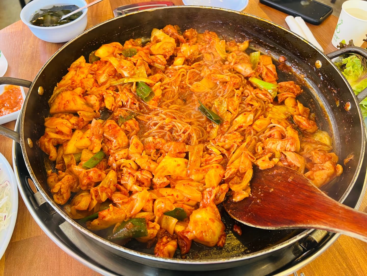 양도 푸짐하고 안에 당면이랑 양배추, 떡도 가득 들어있어요. 양념도 강하지 않고 은근히 감칠맛 나는 스타일이라 계속 먹게 되는 맛!