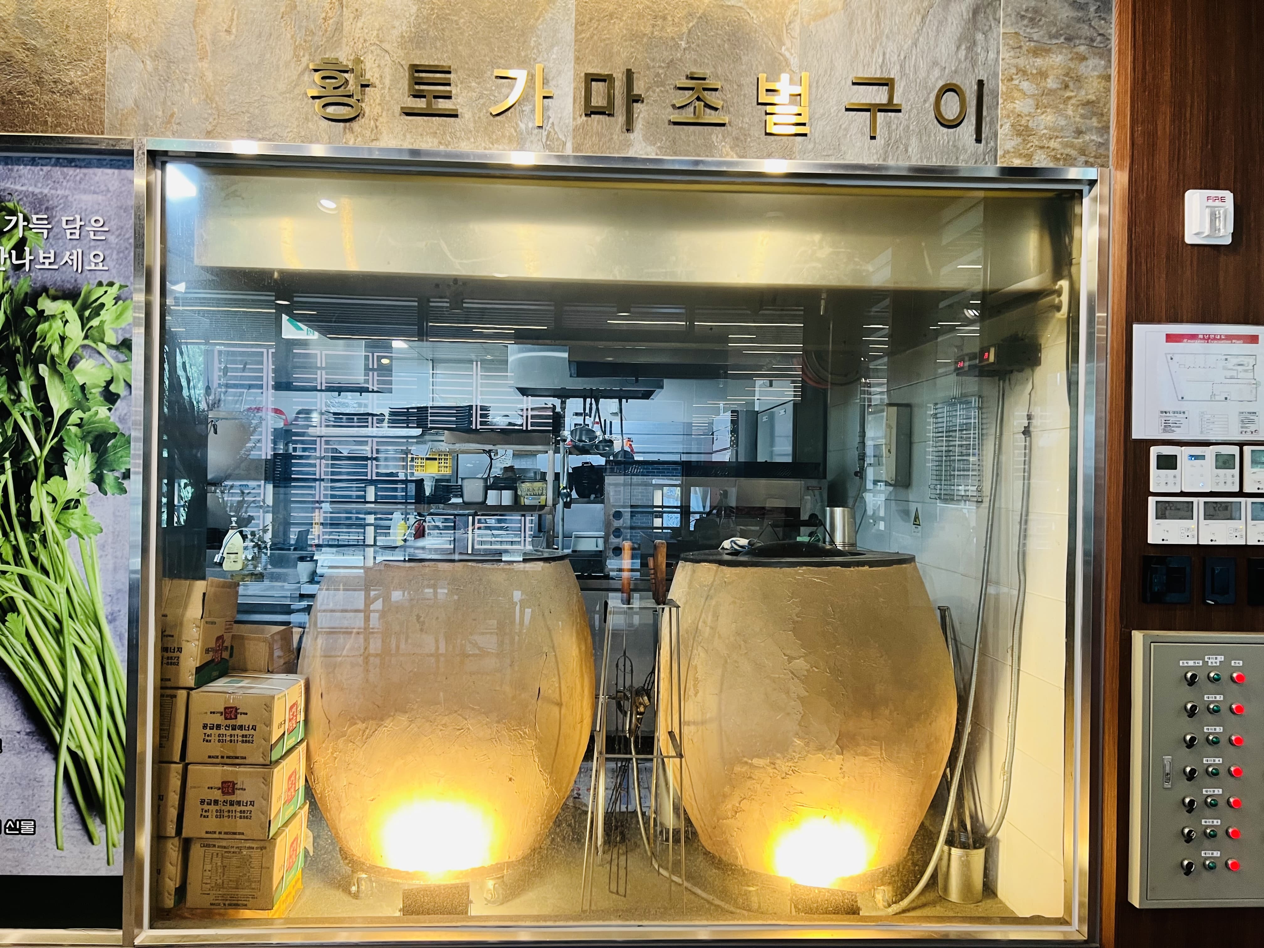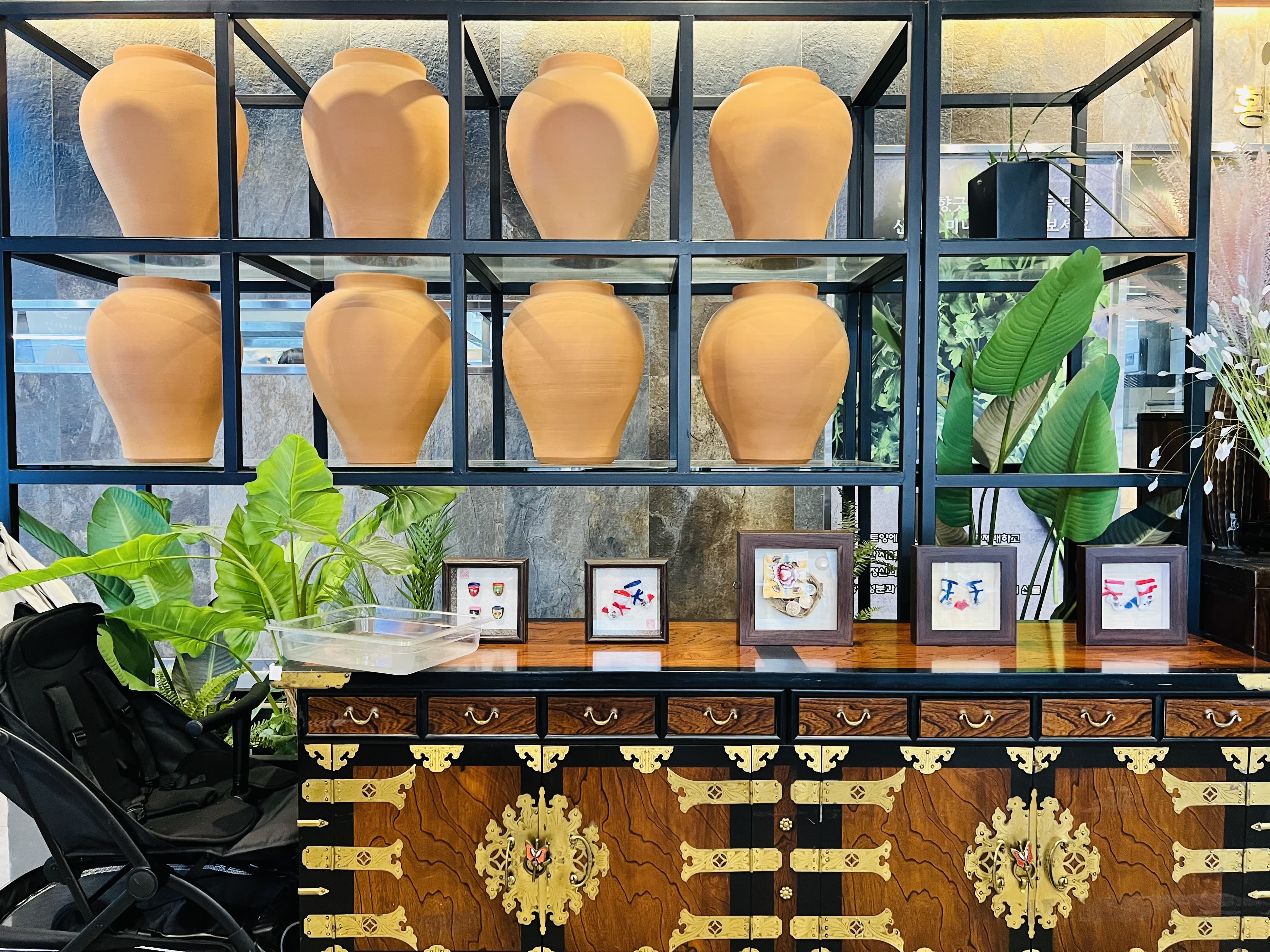 매장 입구부터 황토 가마와 전통장식장이 눈에 띄고