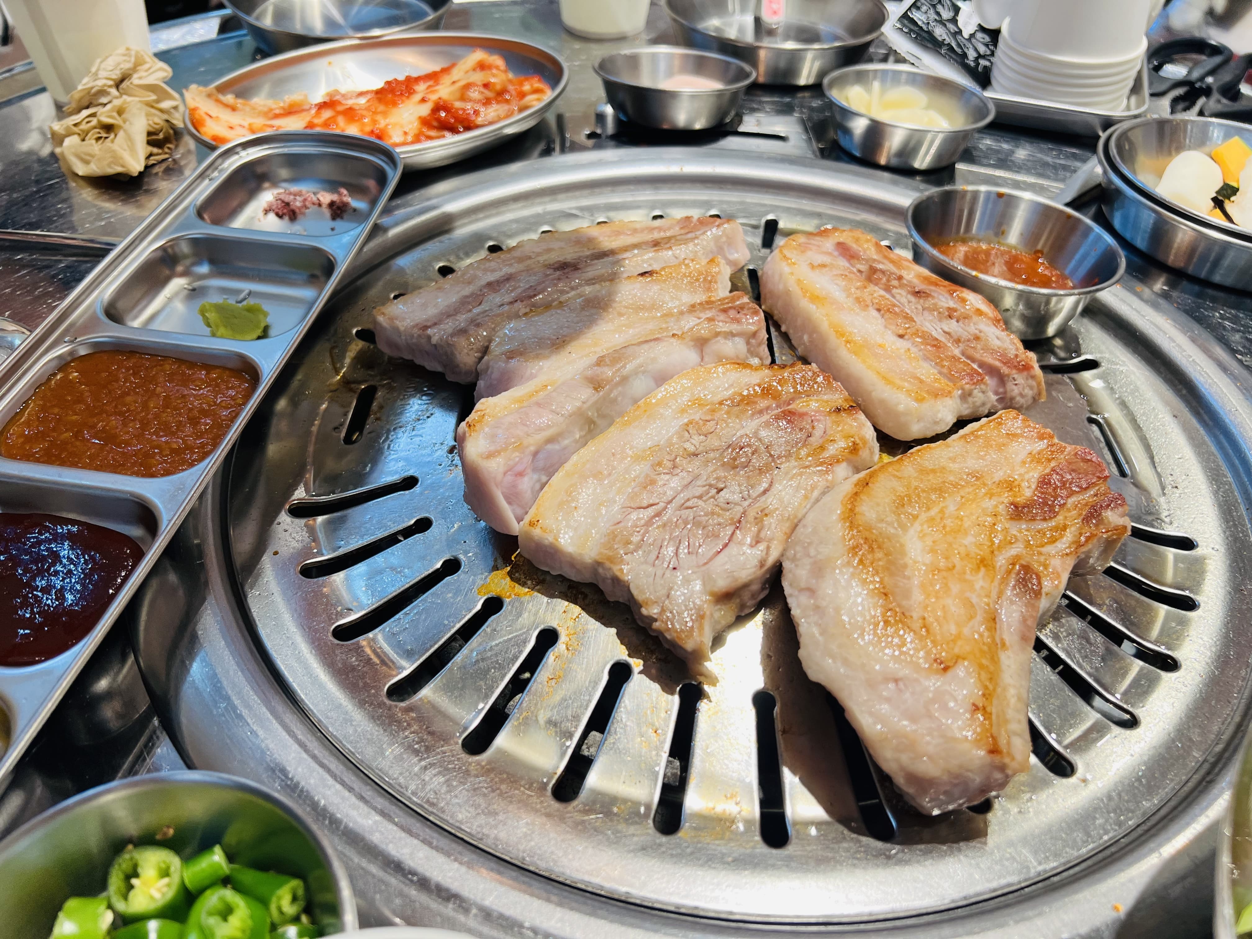 불판 위에서 지글지글 익어가는 비주얼만 봐도 이미 반은 먹은 느낌🔥